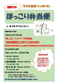 上広谷児童館・西児童館へ学習支援に来ている子どもたちや、鶴ヶ島市内にお住いのご家庭に、お弁当をお届けする「ほっこり弁当便」を開催します!