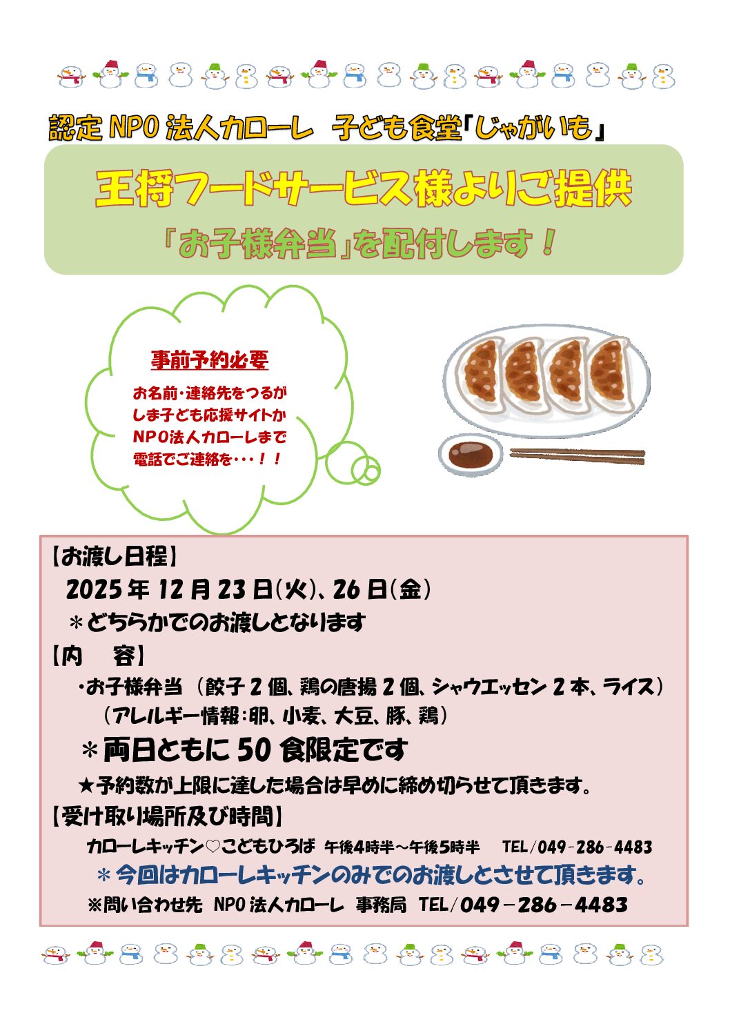 ≪12月26日(金)≫ *餃子の王将 お子様弁当